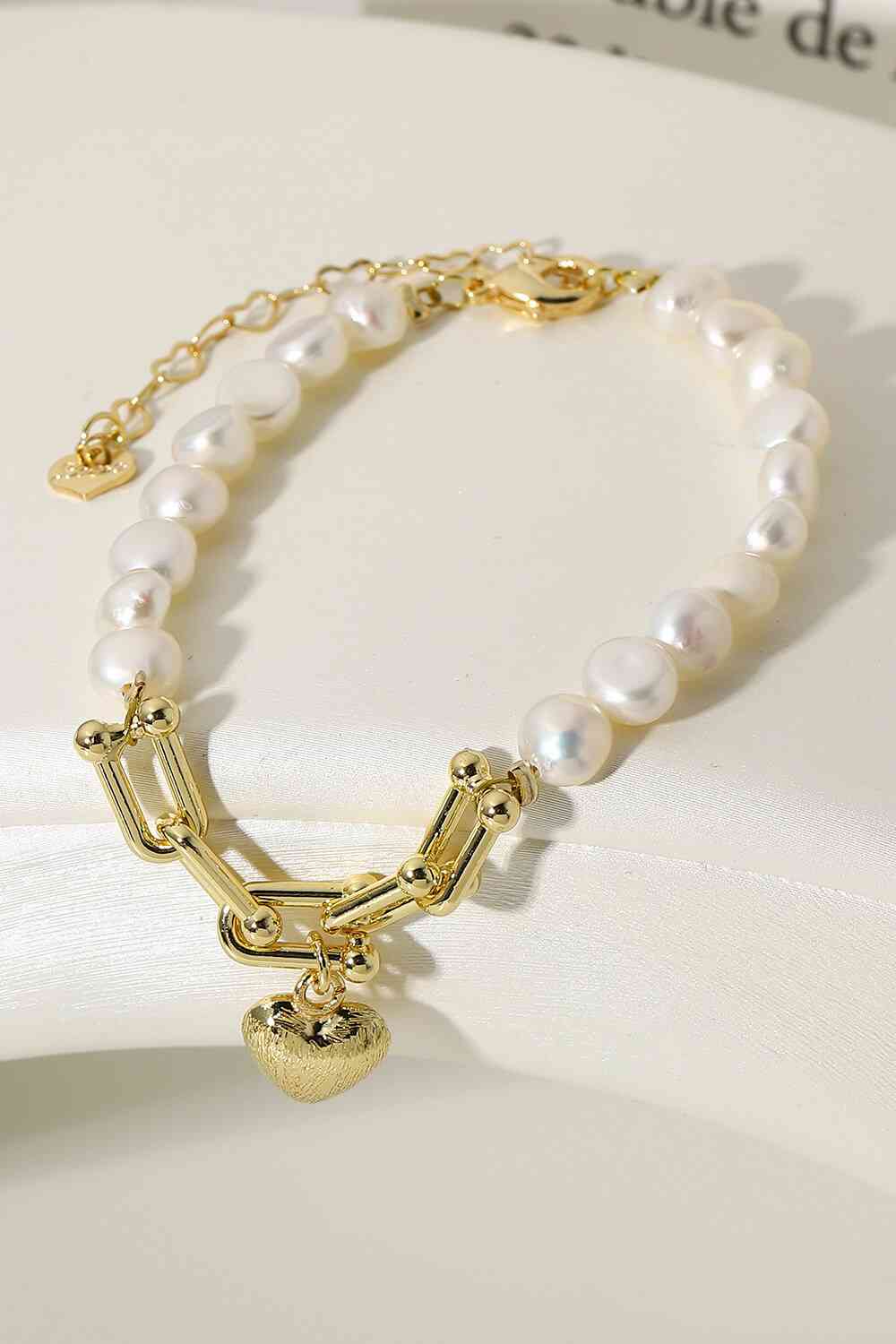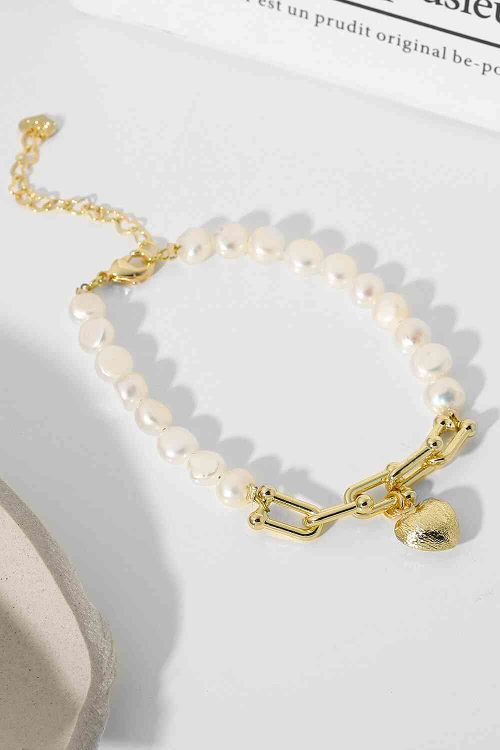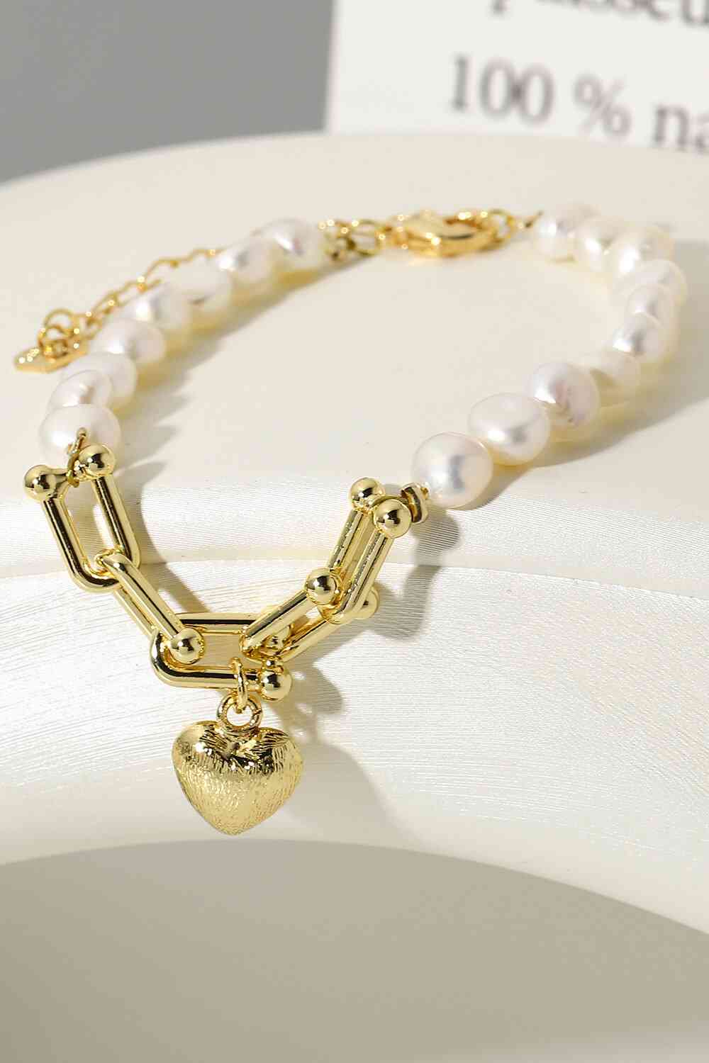 14K Gold Plated Heart Charm Pearl Bracelet