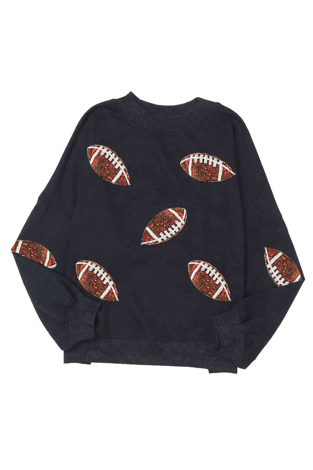 Sequin Football Patch Dropped Shoulder Sweatshirt